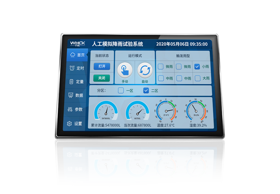 人工模拟降雨有三大部分组成,分别为人工降雨管路、人工降雨自控系统,实验平台三大部分组成,建成后不但能完成模拟不同参数的降雨、不同地表覆盖、不同地下管网分布等条件下人工模拟降雨的实验,也可做渗透、土壤水分运移、植物生态、土木工程等领域相关科研实验工作。